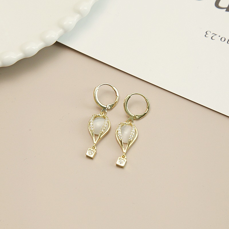 电镀真金S925银针耳饰韩版微镶猫眼石耳环新潮小众设计感耳扣耳钉