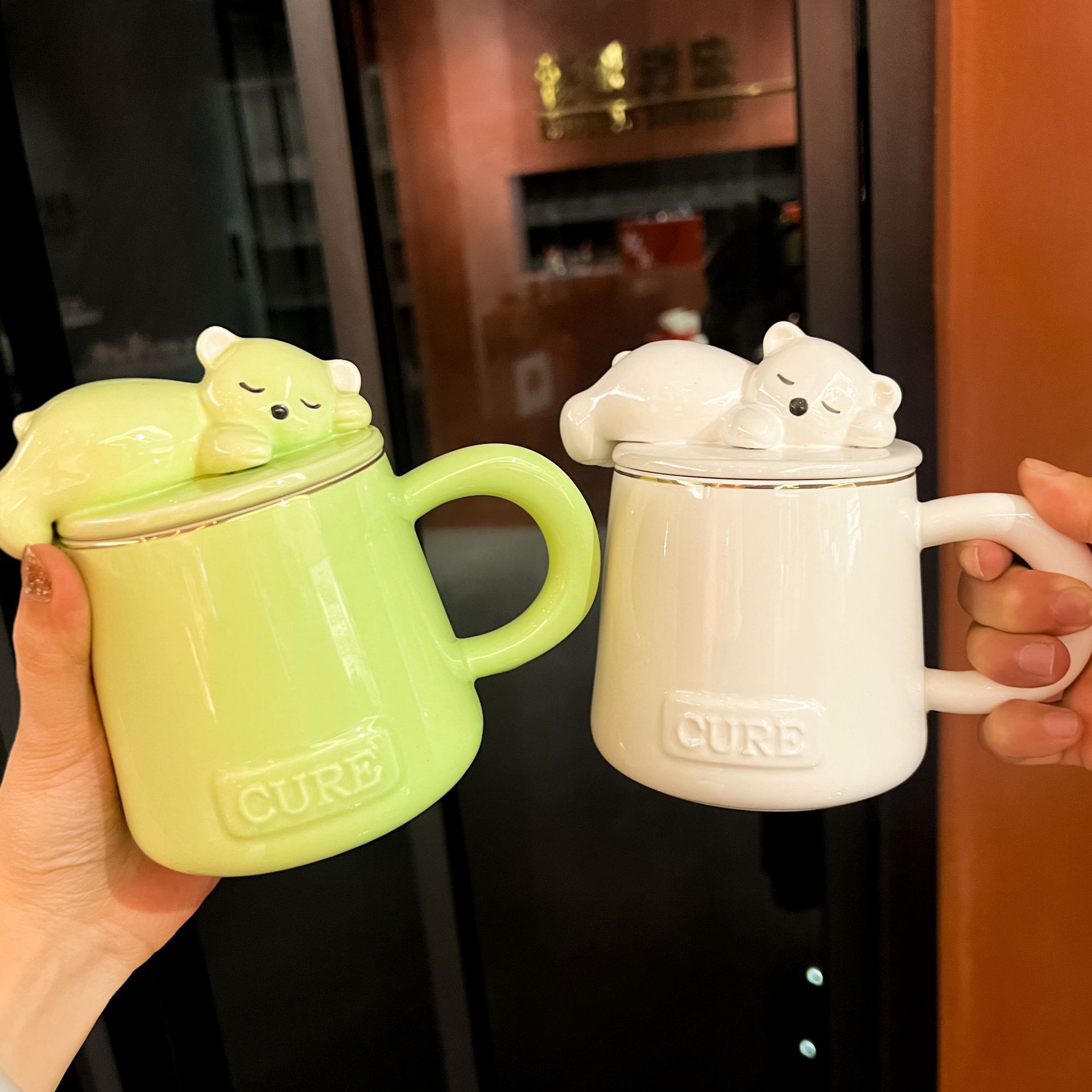 创意可爱趴趴熊陶瓷马克杯办公室陶瓷杯情侣水杯家用高颜值杯子