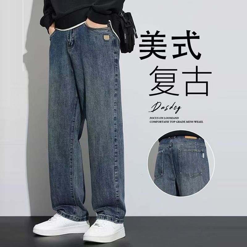 牛仔裤男款直筒秋季宽松男士时尚潮牌美式复古春秋阔腿休闲长裤子