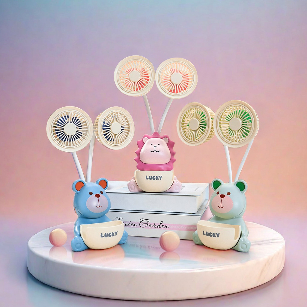 创意新款卡通双头电风扇 usb充电式学生收纳小风扇卧室礼品摆件