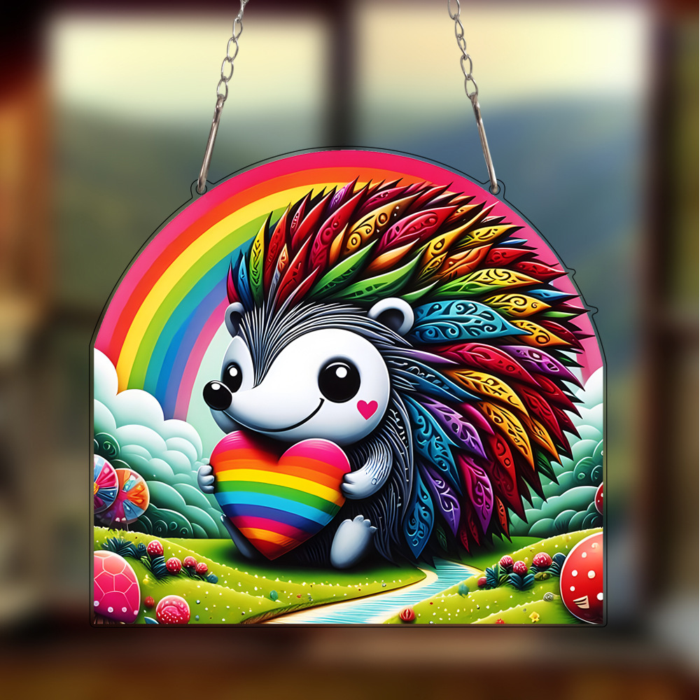 跨境卡通彩色刺猬亚克力挂件阳光捕捉器窗户门挂艺术节日场景装饰