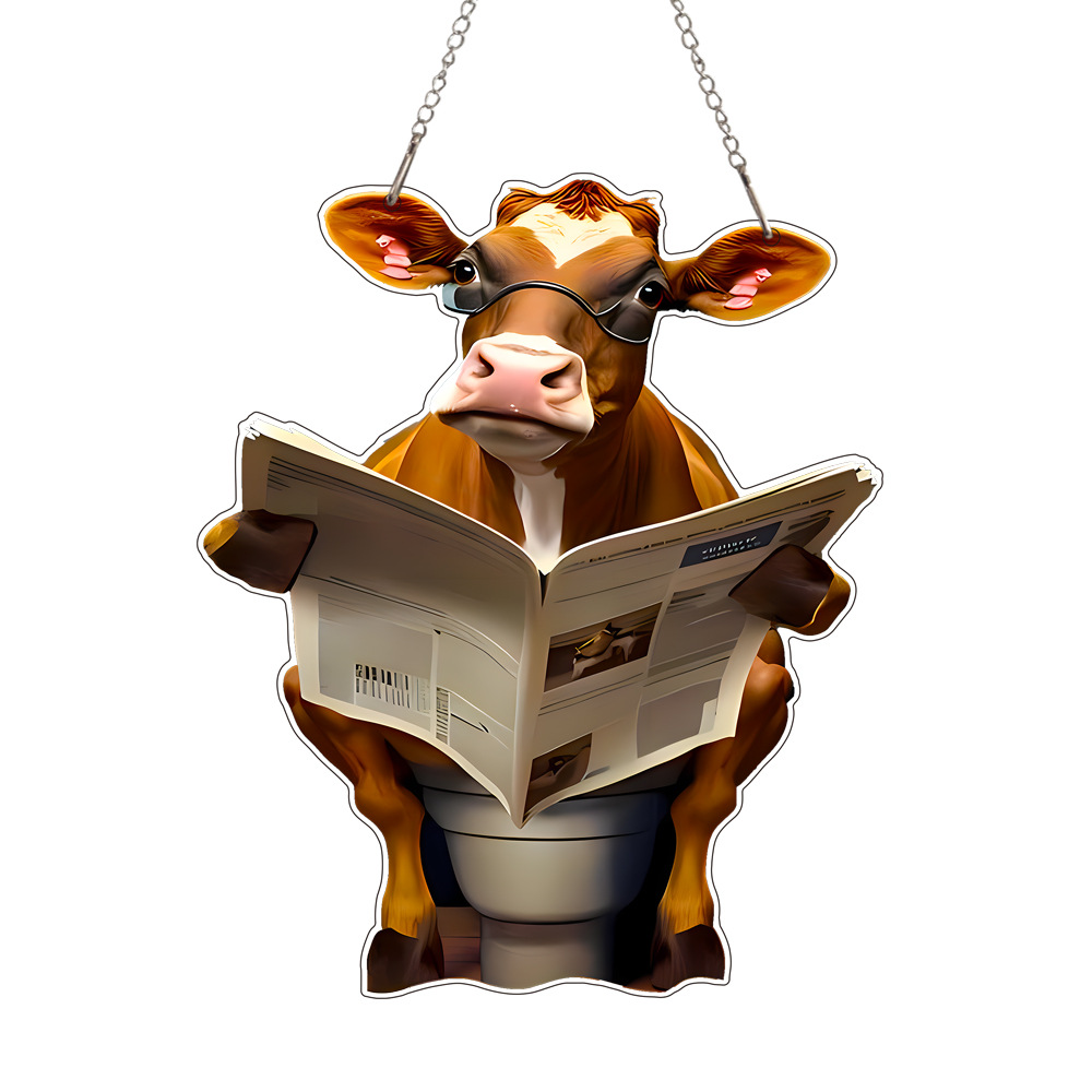 跨境卡通蹲马桶的奶牛亚克力太阳捕捉器窗户门廊悬挂艺术装饰挂件