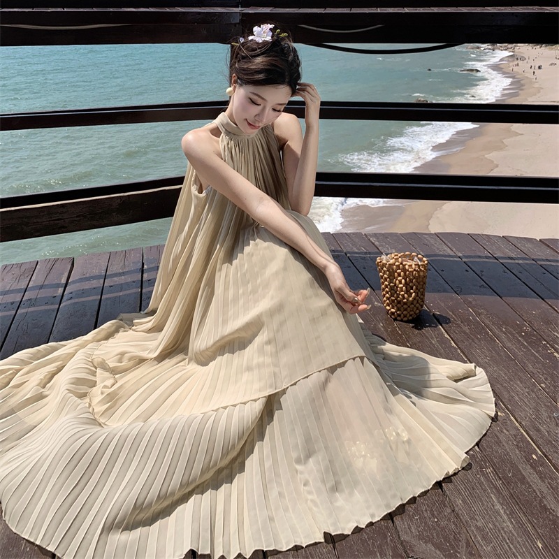 海边度假连衣裙百褶裙长裙高级氛围拍照女神穿搭性感仙气套装裙子