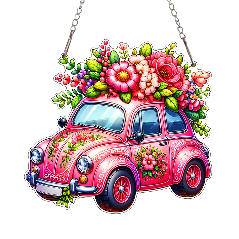 跨境卡通彩色花朵汽车亚克力阳光捕捉器窗户悬挂节日挂饰