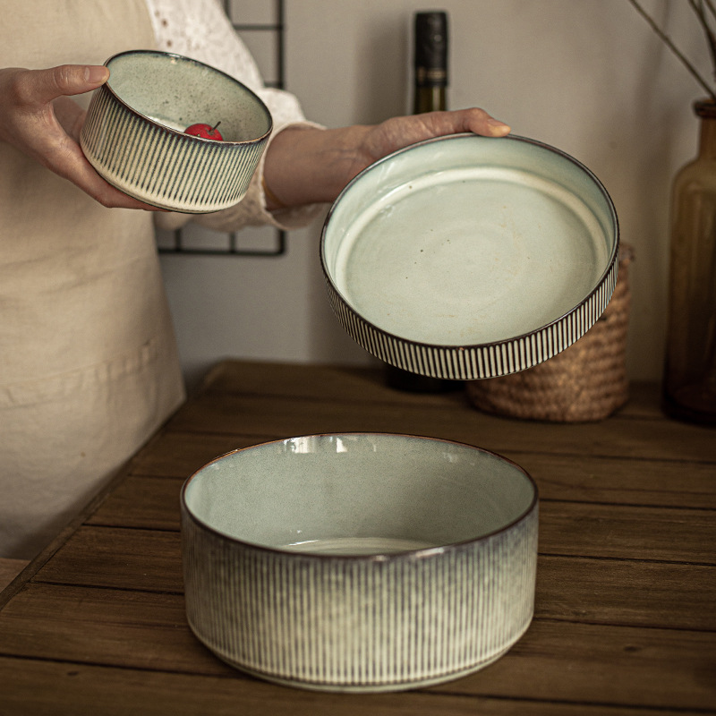 【北欧小众多器型碗盘】网红百搭条纹碗碟创意陶瓷菜盘沙拉碗微瑕