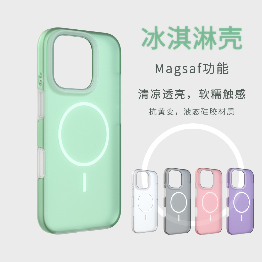 适用iPhone16pro磁吸手机壳15pro冰淇淋半透细圈简约高级感果冻壳