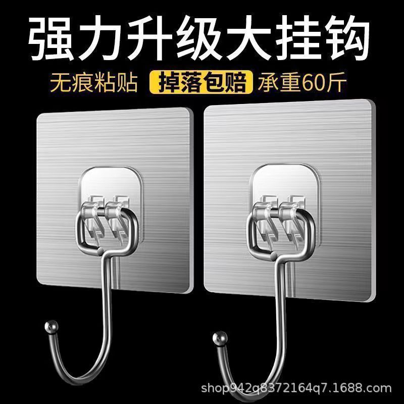 挂钩粘贴强力贴不锈钢超大号无痕免打孔粘钩挂勾厨房浴室钩子批发