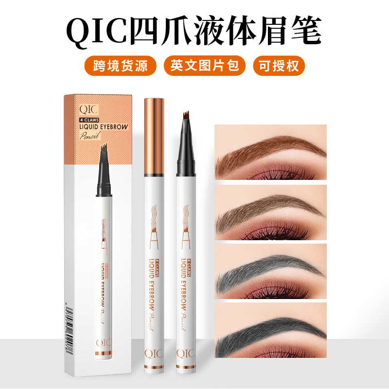 QIC四爪液体眉笔持久防水防汗不晕染极细不脱妆四头分叉眉笔跨境