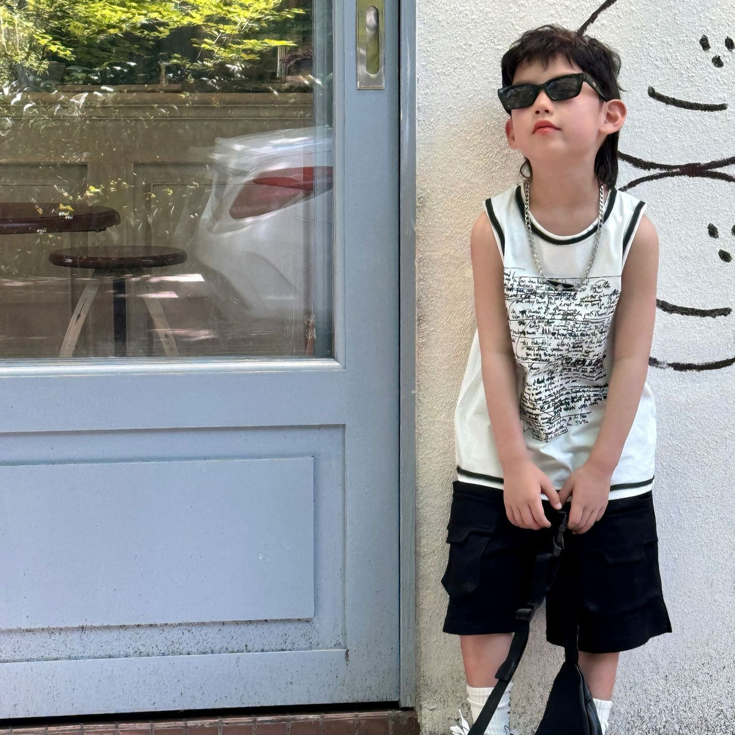 泰如夏季新款韩版男童百搭洋气字母美式设计感背心儿童T恤潮