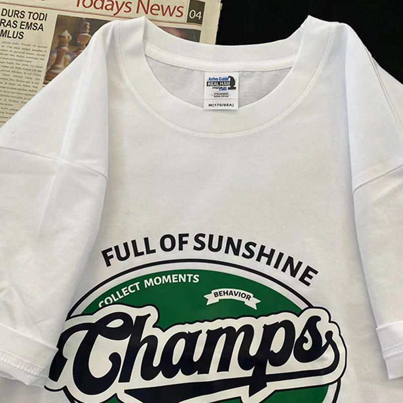 300斤美式复古潮牌春夏新款纯棉短袖T恤女正肩学生超火上衣设计感