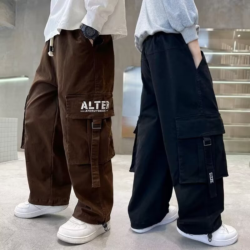 男童工装裤春秋款儿童加绒裤子春装潮痞帅中大童春季宽松长裤