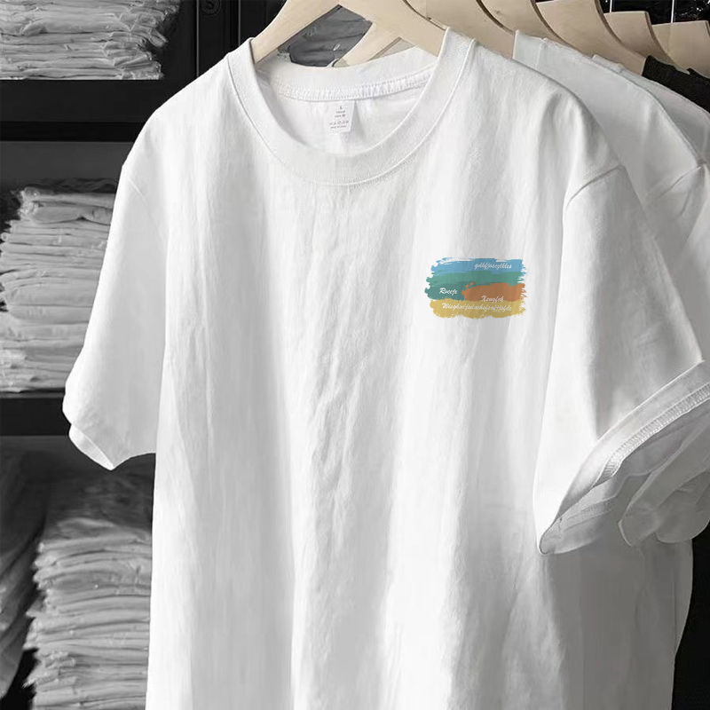 小众潮牌重磅字母短袖新款拼接设计T恤圆领宽松休闲袖T恤情侣上衣