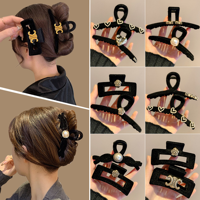 黑色植绒发夹女新款后脑勺大号抓夹发量多盘发鲨鱼夹子头饰
