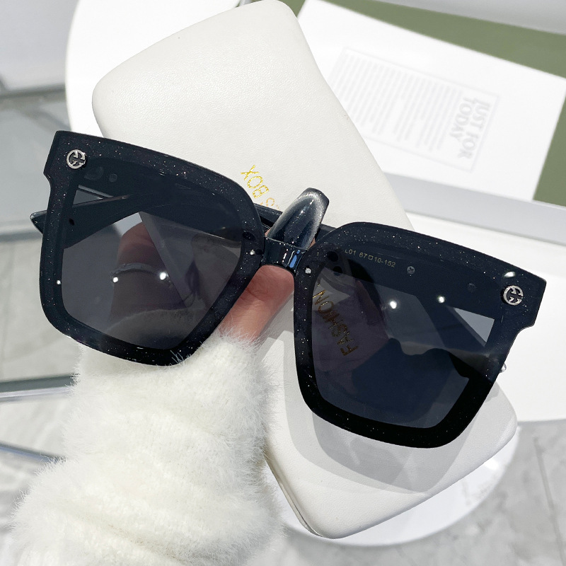 欧美时尚切边太阳镜复古大框女士偏光眼镜闪粉镜框大框显瘦显脸小