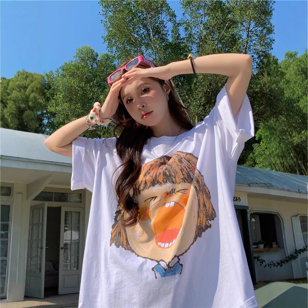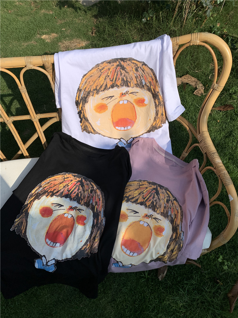 少女胖妹妹女装夏季ins涂鸦小孩短袖T恤时尚宽松印花学生别致上衣