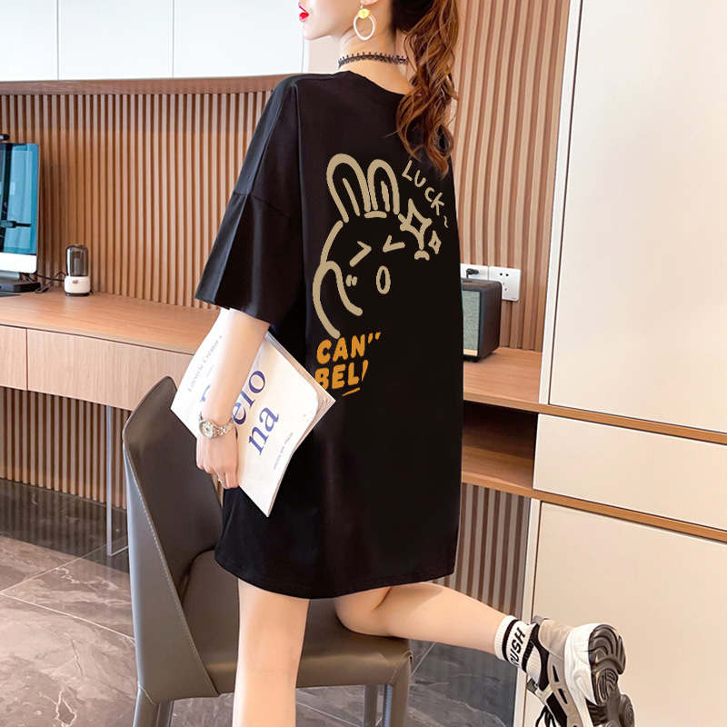 学生大码洋气减龄纯棉短袖t恤女中长款夏装宽松显瘦卡通兔子上衣