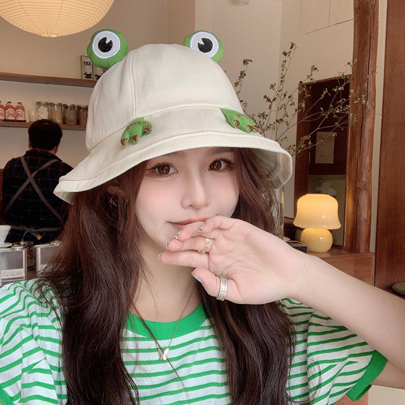 可爱青蛙帽子女春夏季韩版百搭渔夫帽日系学生卡通防晒遮阳帽盆帽