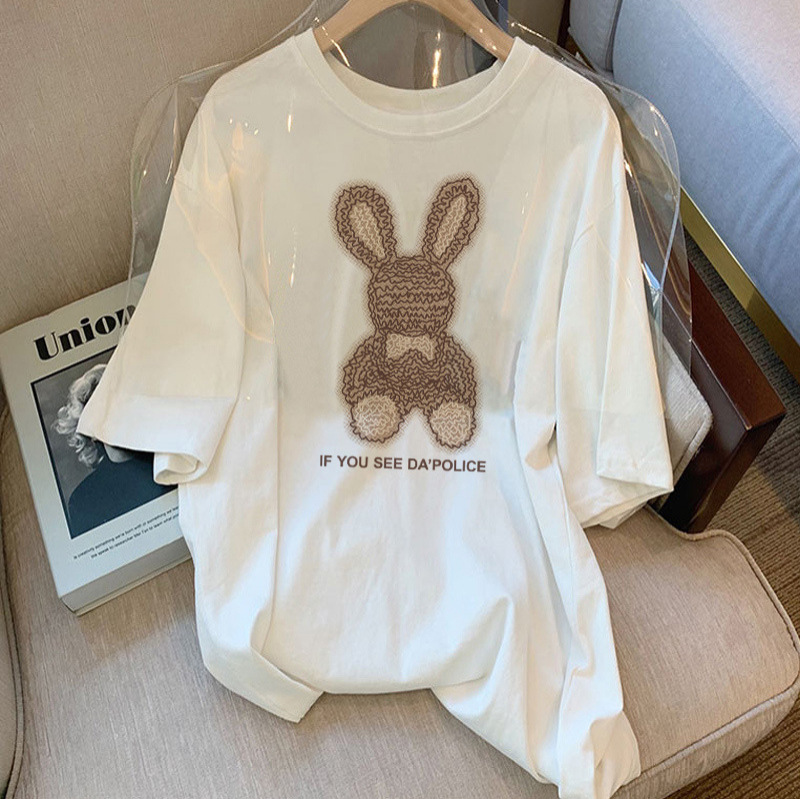 学生少女纯棉短袖大码T恤女韩版宽松中长款时尚洋气减龄上衣夏季