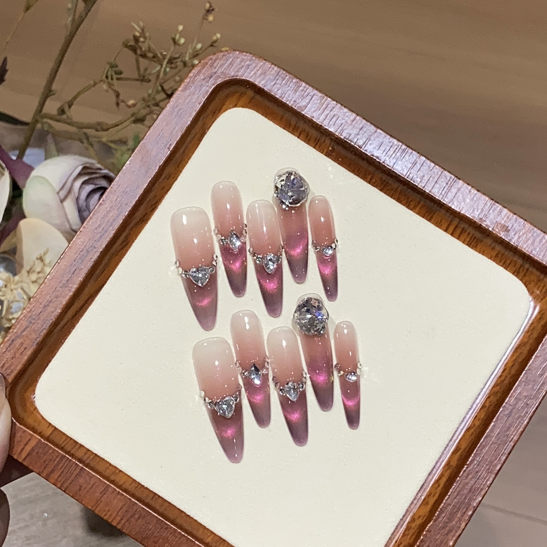 一只顾美甲 渐变极光粉微笑猫眼法式碎钻K9钻心动至上穿戴式甲片