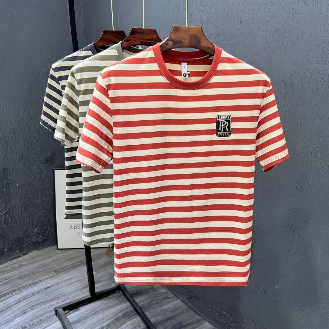 夏季条纹T恤ins潮牌短袖新款男装痞帅时尚百搭休闲修身上衣服