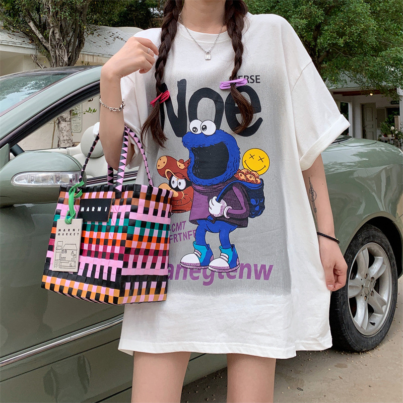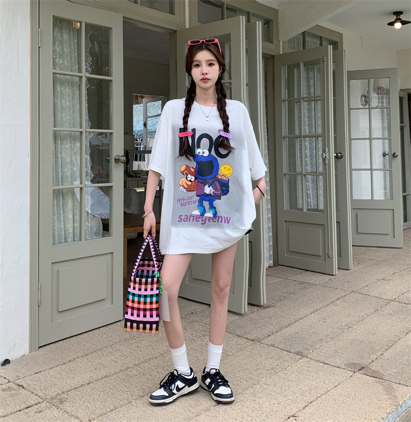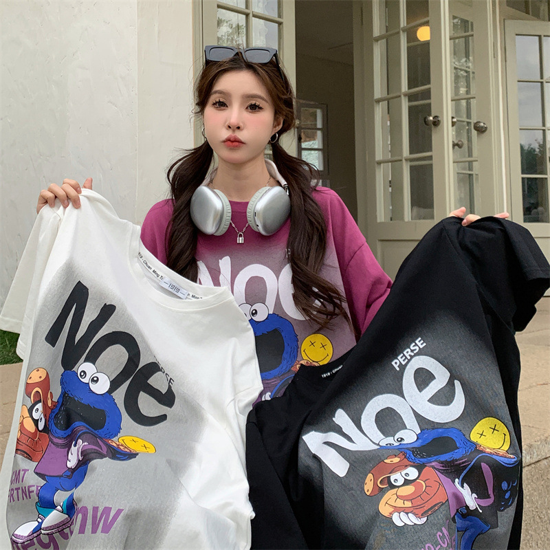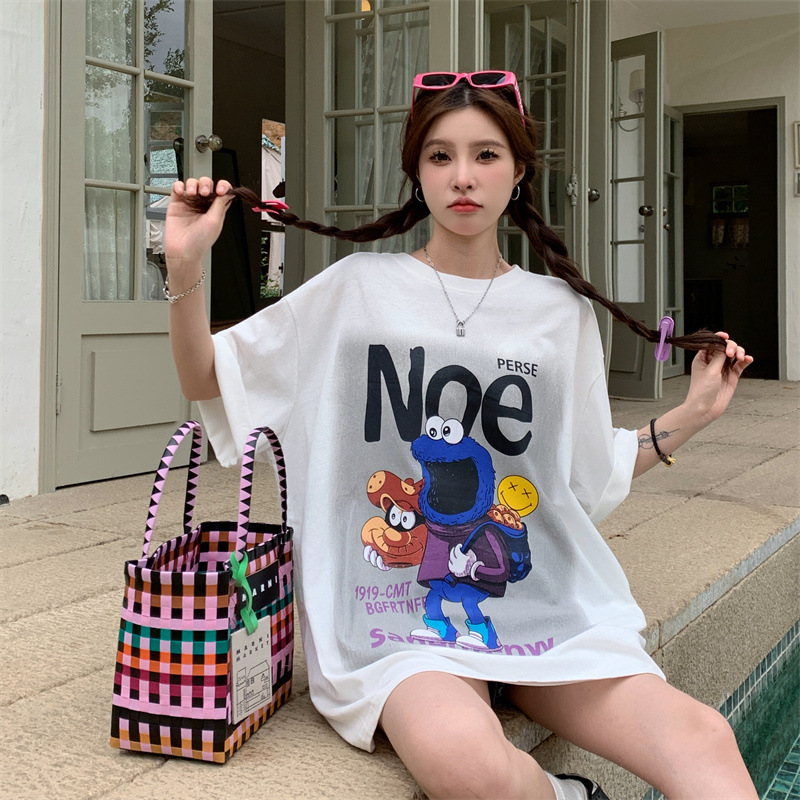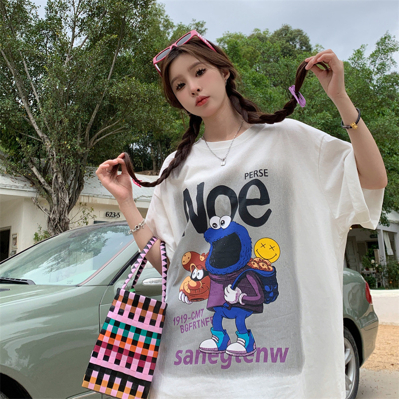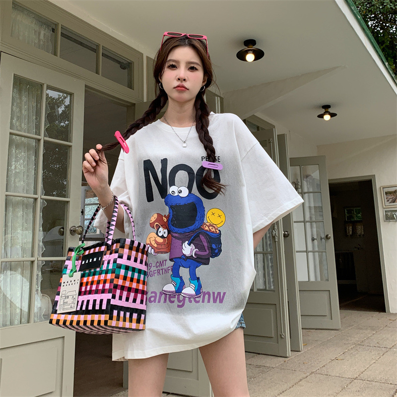 韩版胖MM纯棉大码女装夏季ins卡通印花短袖T恤加肥学生半袖上衣