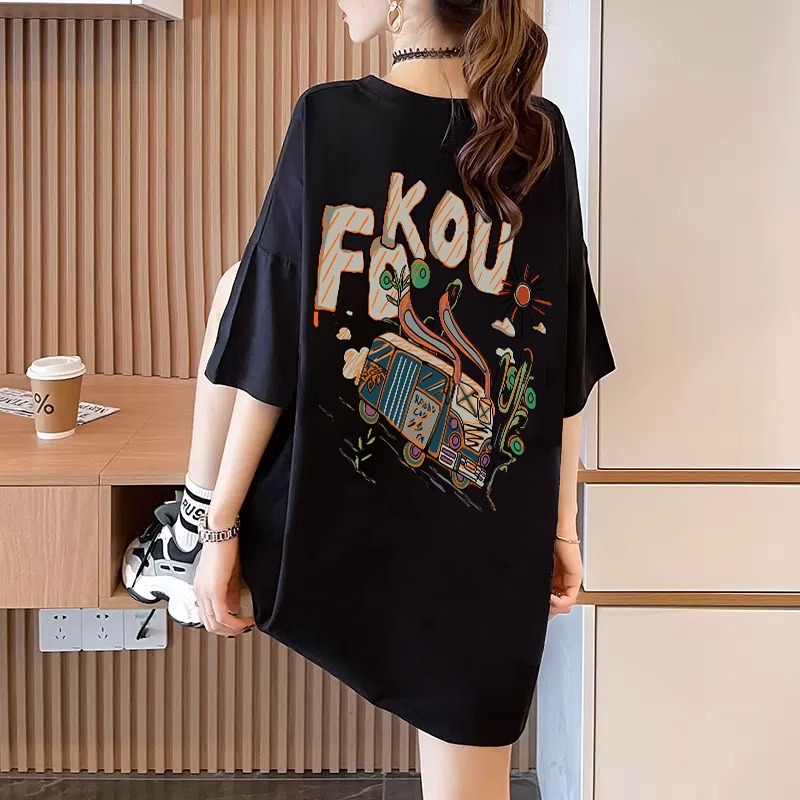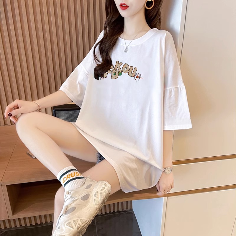 学生大码女装短袖t恤女中长款夏季2025新款宽松遮肚纯棉白色上衣