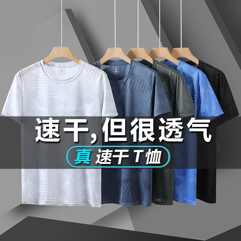 夏季速干透气T恤男户外运动休闲t恤大码迷彩男士圆领薄款冰丝短袖