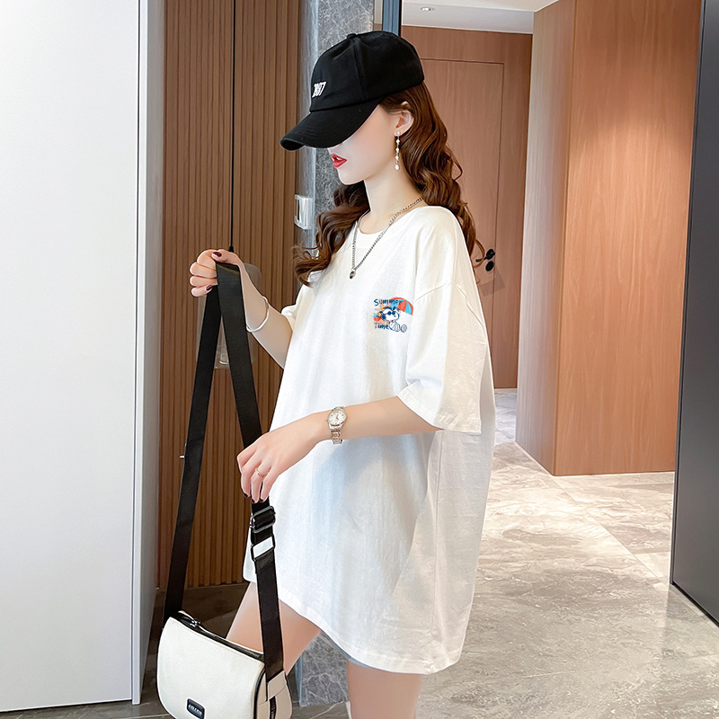 纯棉短袖t恤300斤大码女装夏季宽松显瘦体恤设计感小众上衣ins潮