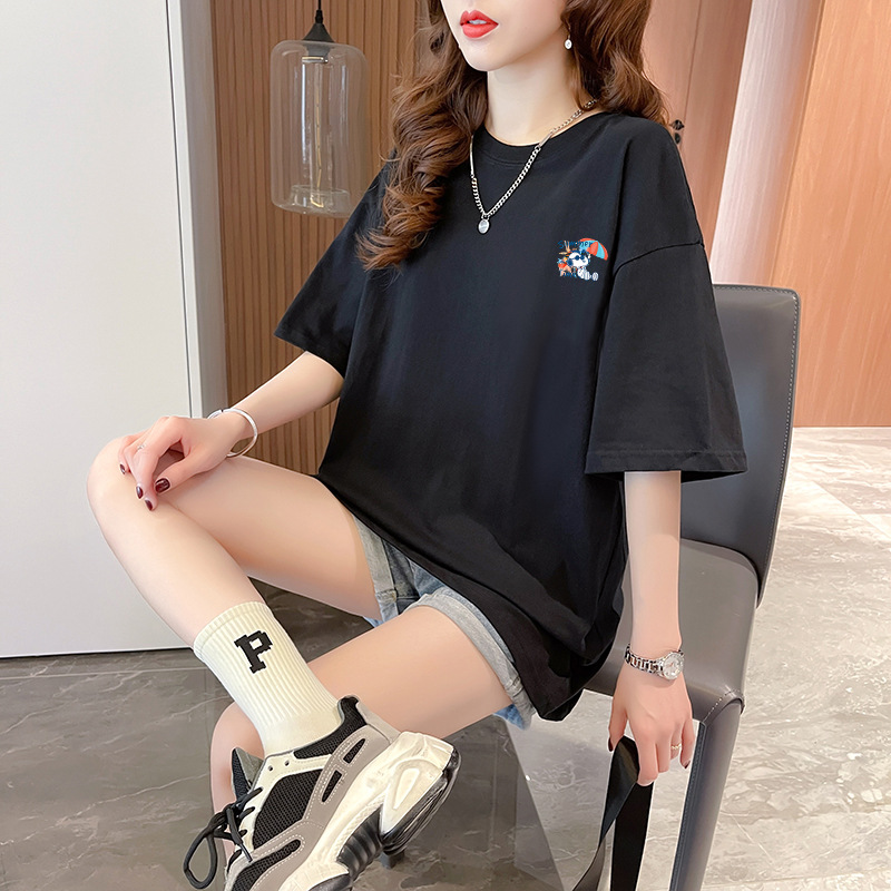 夏季新款韩版卡通印花字母休闲圆领宽松情侣装短袖学生DT154