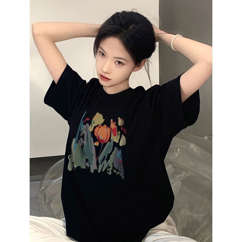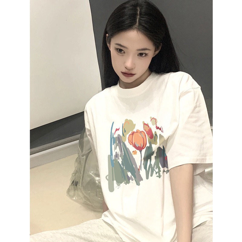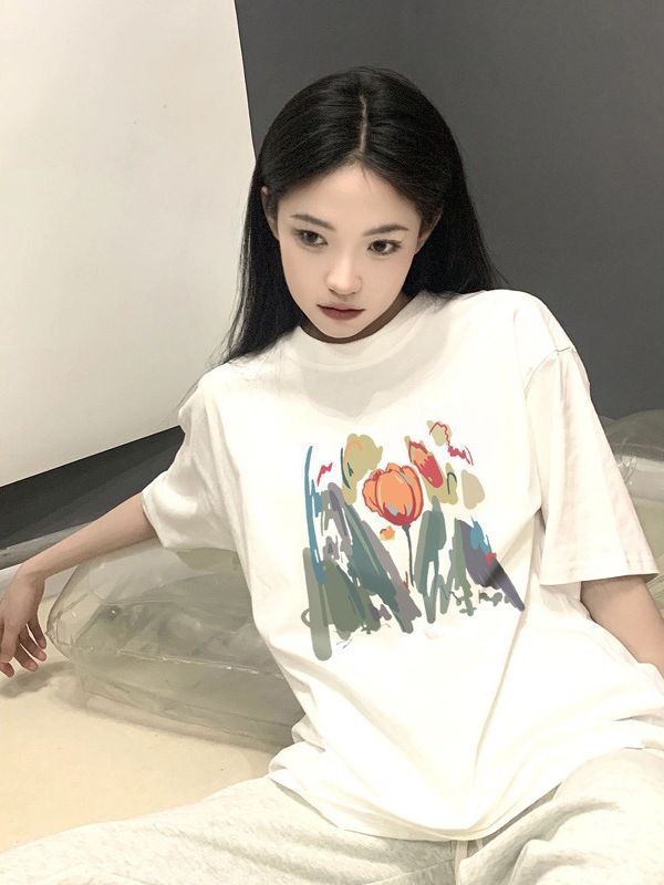 学生纯棉短袖T恤女大码2025夏季新款宽松时尚减龄体恤衫休闲上衣