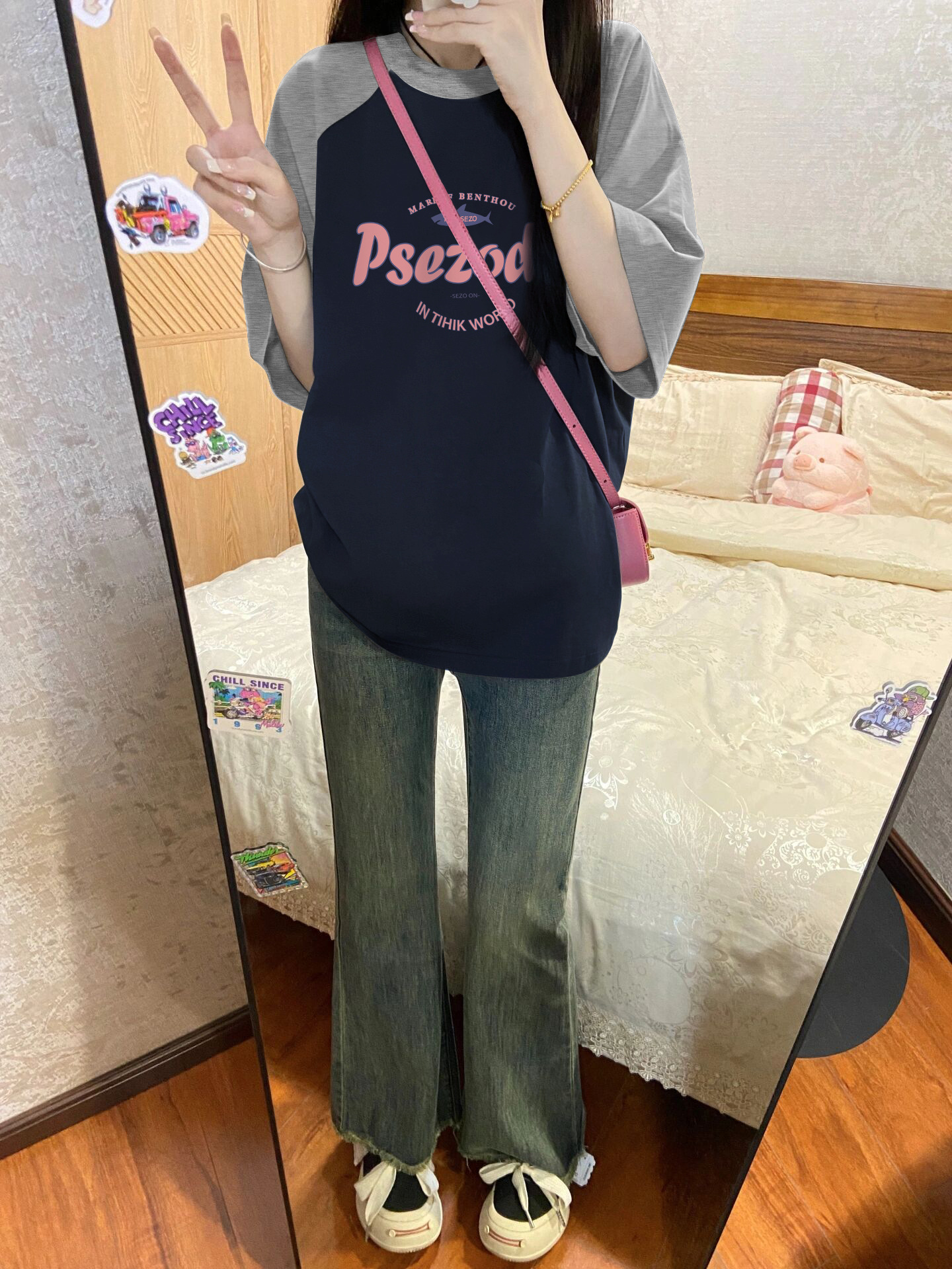 插肩短袖t恤女夏装2025新款设计感小众宽松显瘦纯棉港风chic上衣