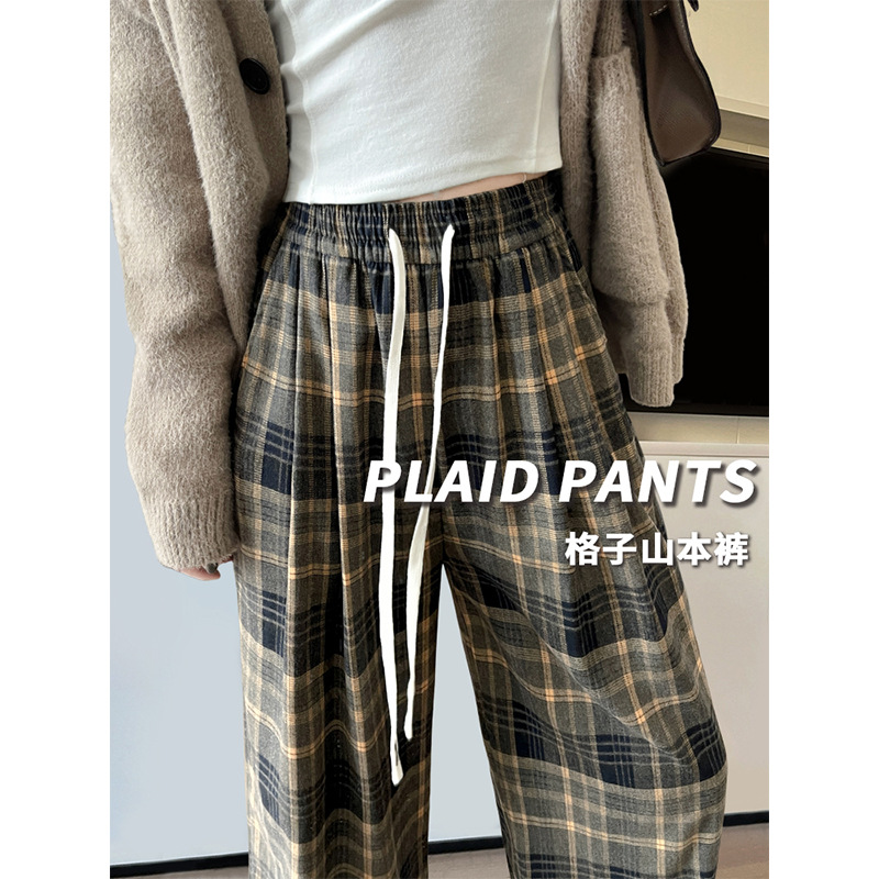 格子山本裤女2025新款春秋高腰垂感宽松慵懒松弛感小个子阔腿裤子