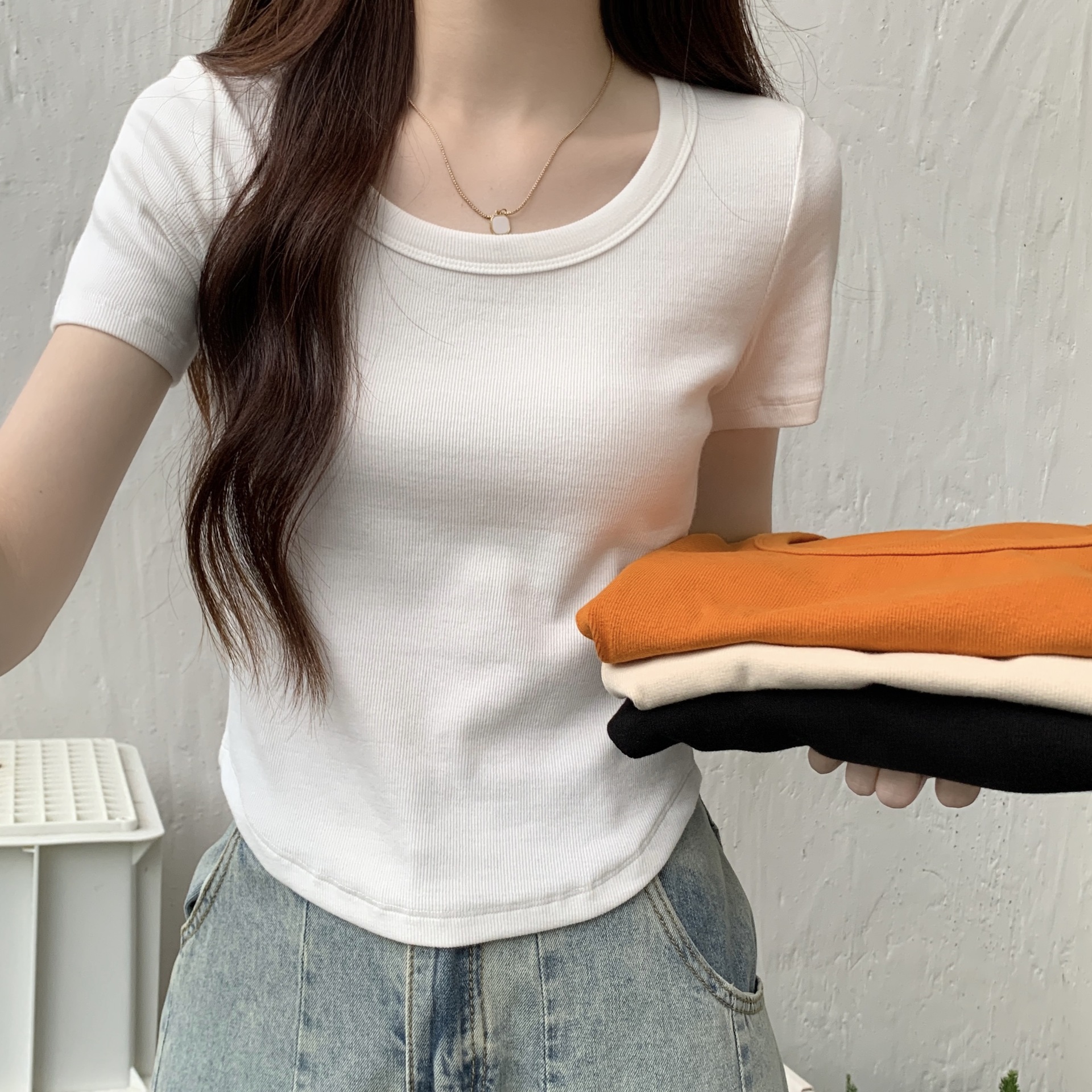 螺纹正肩短袖t恤女夏季设计感小众小个子修身短款上衣