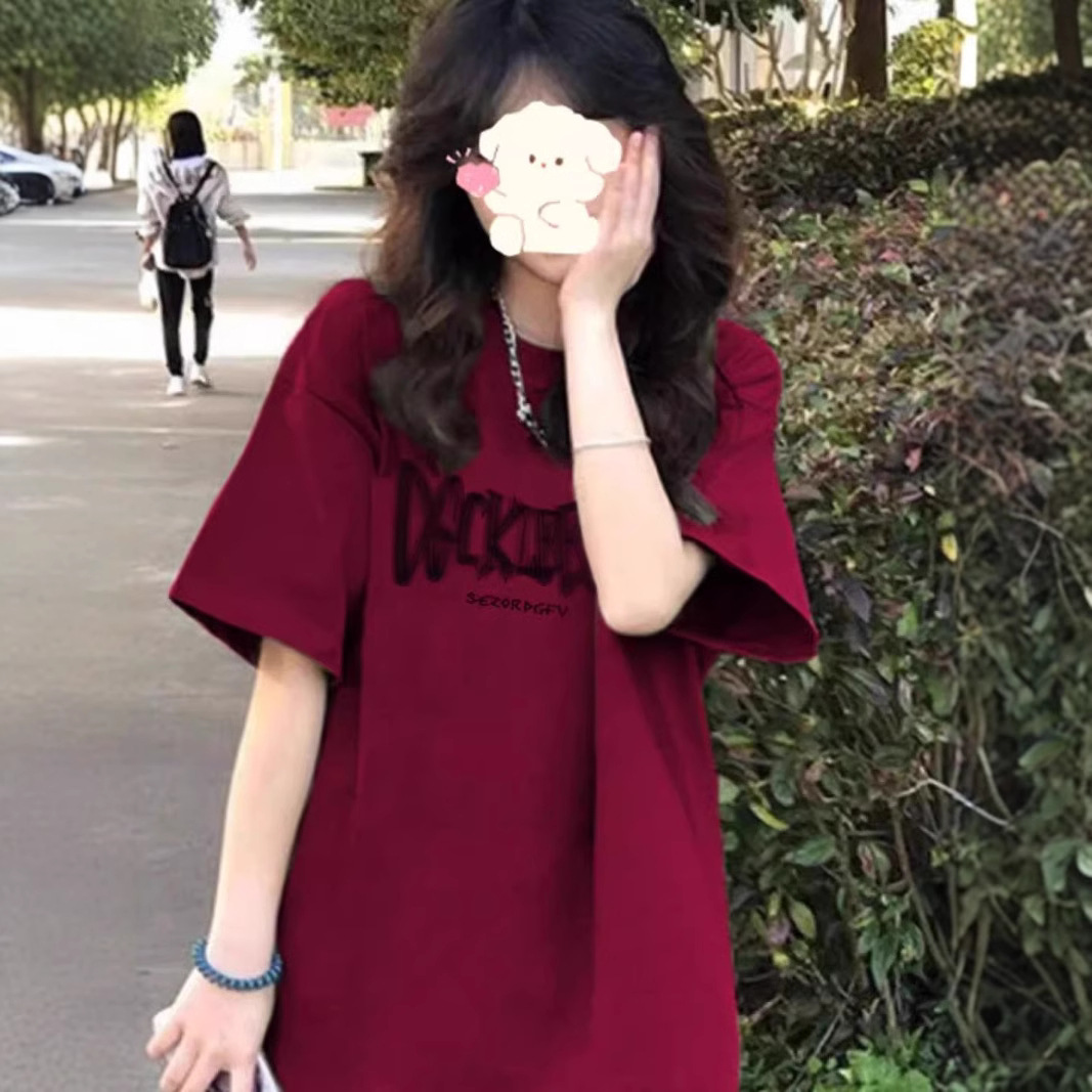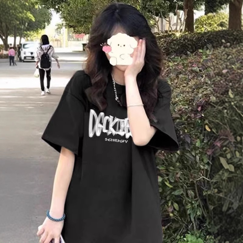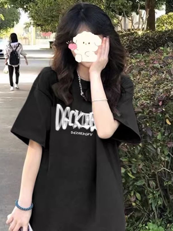 美式正肩短袖T恤女夏季新款洋气显瘦撞色字母印花打底衫上衣