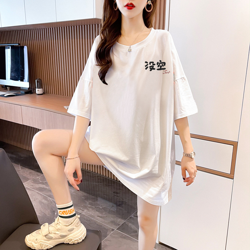 学生大码纯棉中长款短袖t恤女夏2025新款宽松设计感印花显瘦上衣