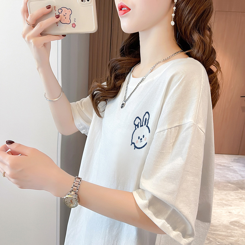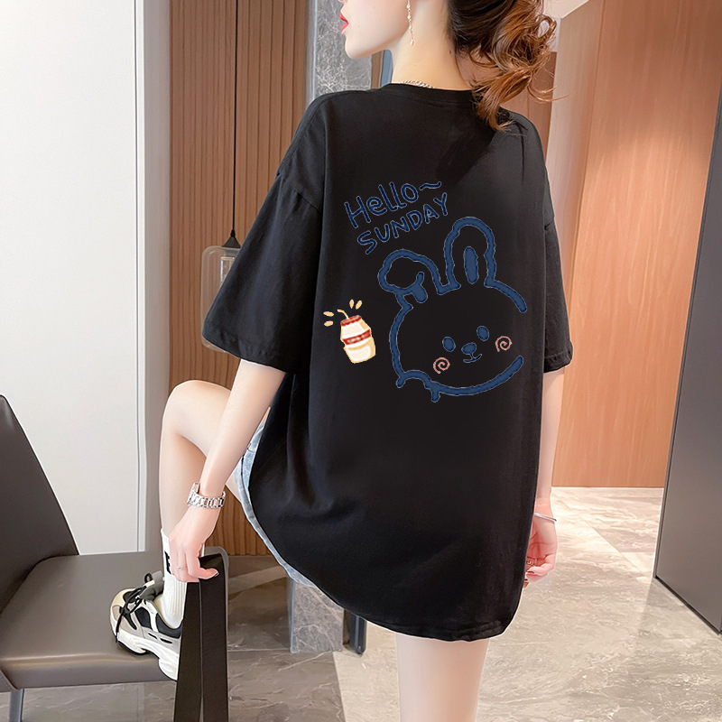 韩风chic大码女装t恤短袖纯棉休闲慵懒风ins潮兔子设计感上衣夏装