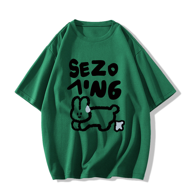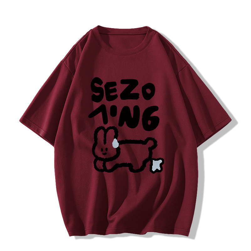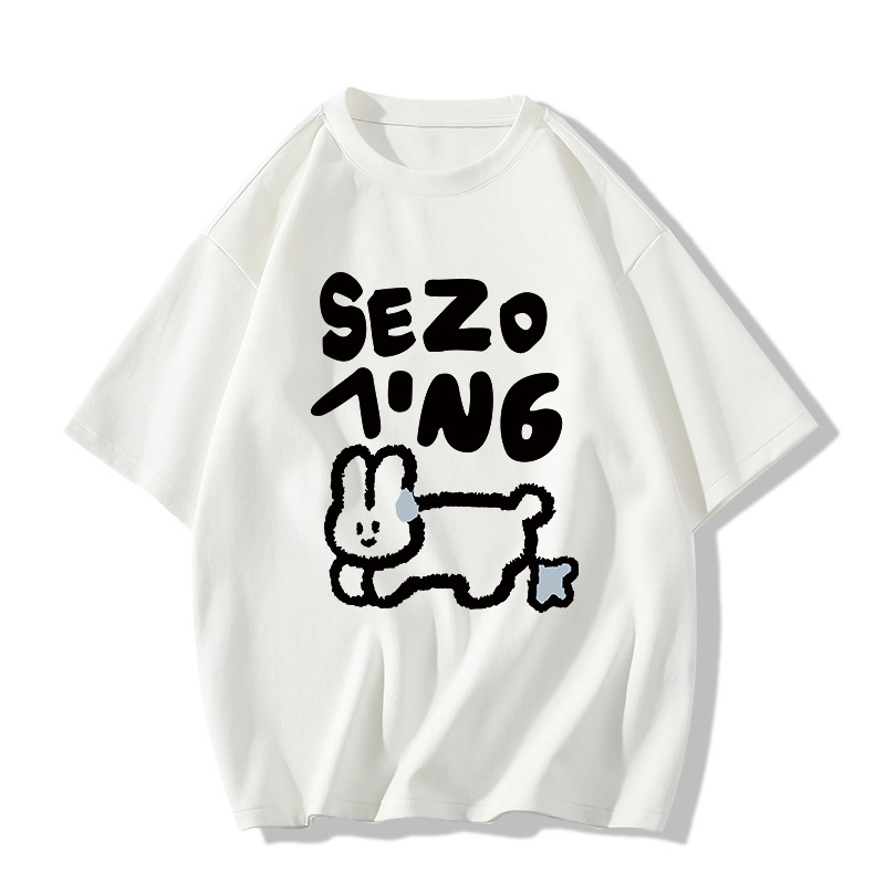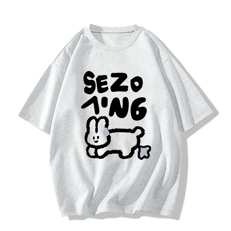 花灰色纯棉短袖正肩t恤女夏季2025新款设计感小众宽松童趣风上衣