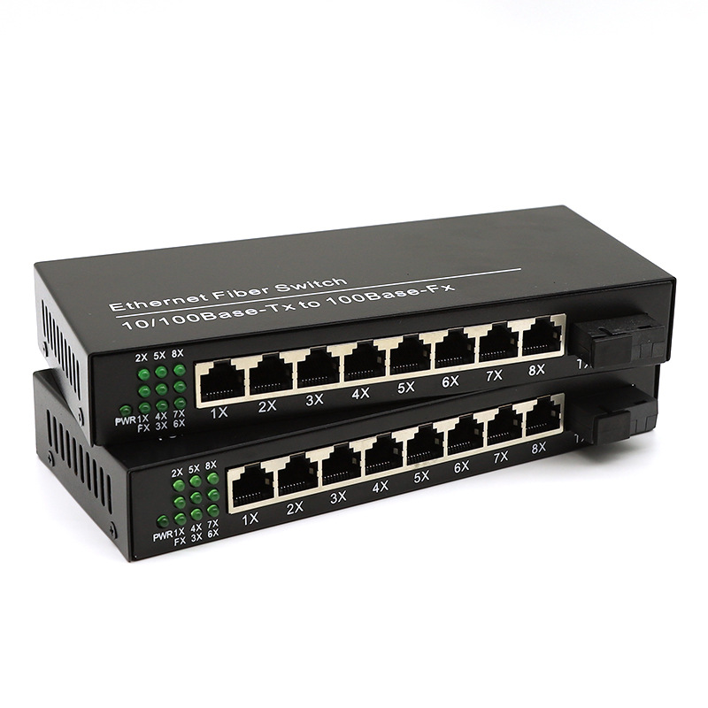 1光8电百兆单模单纤光纤收发器百万高清摄像机AB端一对