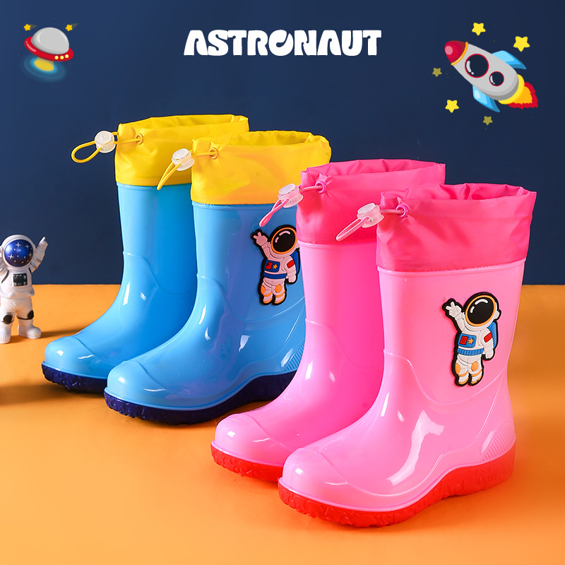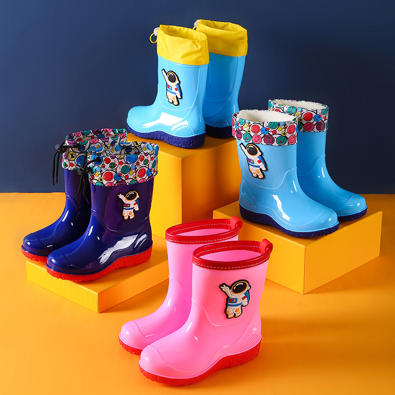 宇航员儿童雨鞋2-16岁特大童长筒水靴男女童保暖内胆加厚胶鞋新款