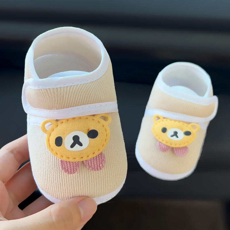 秋季宝宝护脚学步鞋夹棉小熊不掉软底步前鞋0-1岁新生婴儿布鞋子