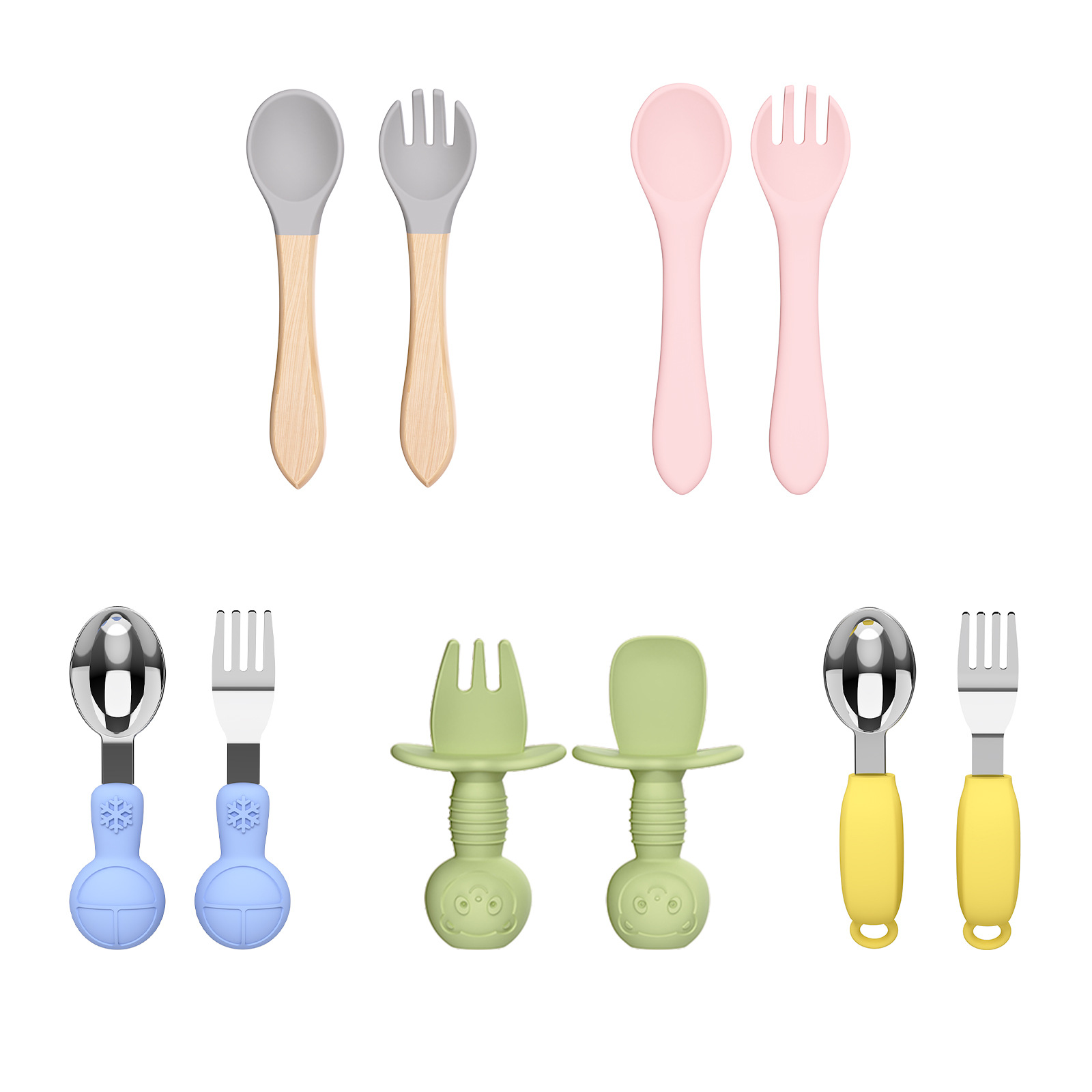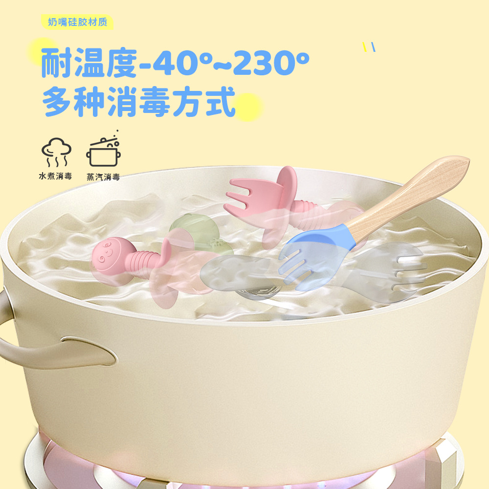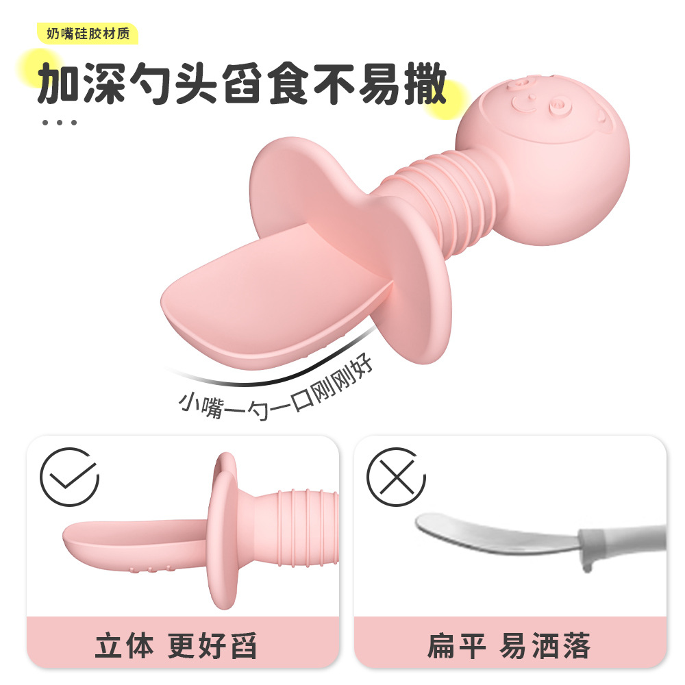 勺子新生婴儿童幼宝长木柄不锈钢喂水辅食品级耐高温硅胶软勺