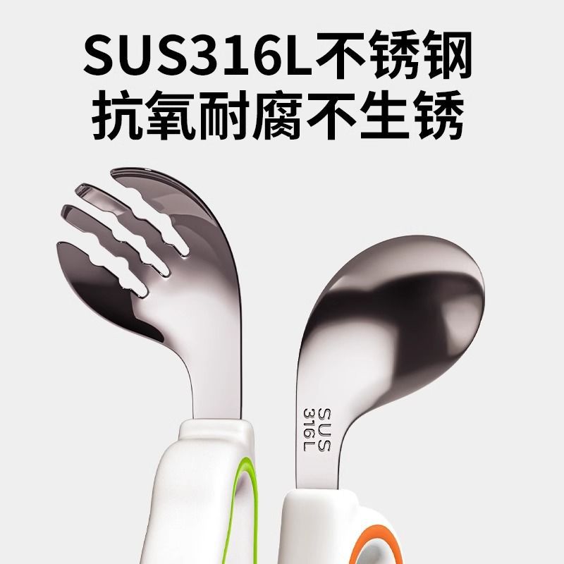 儿童餐具316L不锈钢勺叉自主进食弯叉勺学吃饭训练勺子短柄辅食勺