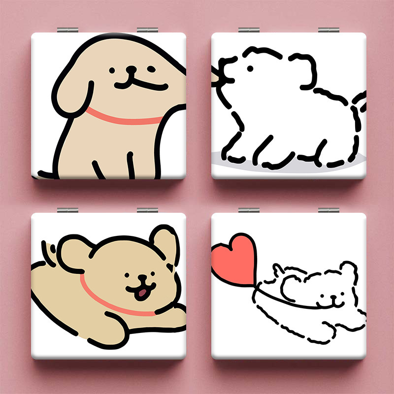 线条小狗便携可折叠可爱化妆镜女简约学生宿舍图案随身携带小镜子