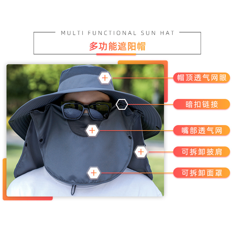 加大帽檐360度防晒户外帽子男遮阳帽防水钓鱼帽登山帽子