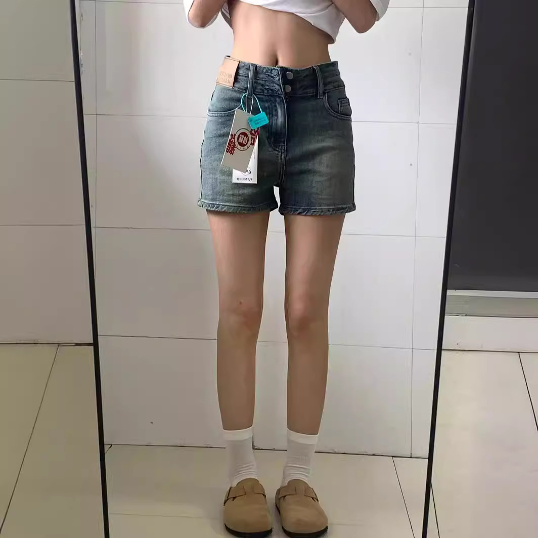 大码美式复古牛仔短裤女夏季高腰胖mm显瘦设计感宽松休闲直筒裤子