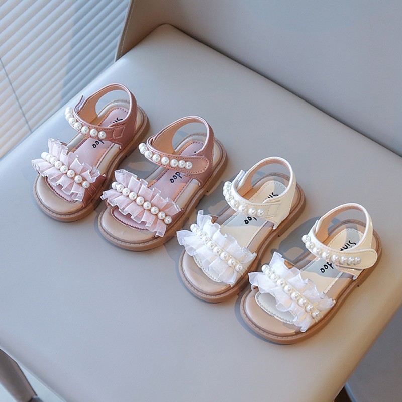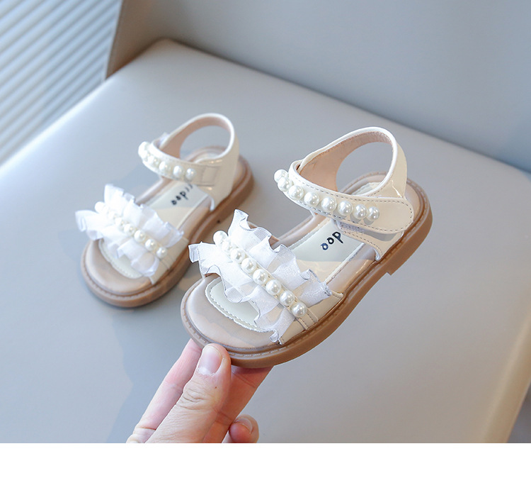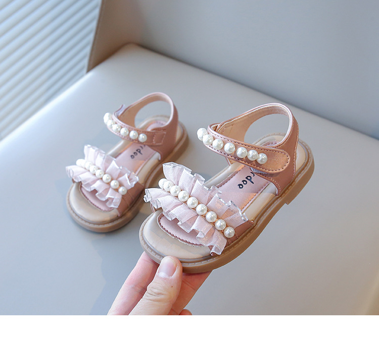 2025年夏季新款小女孩甜美珍珠公主鞋韩版时尚气质宝宝蕾丝边凉鞋