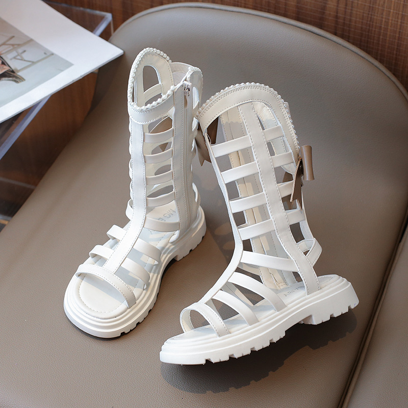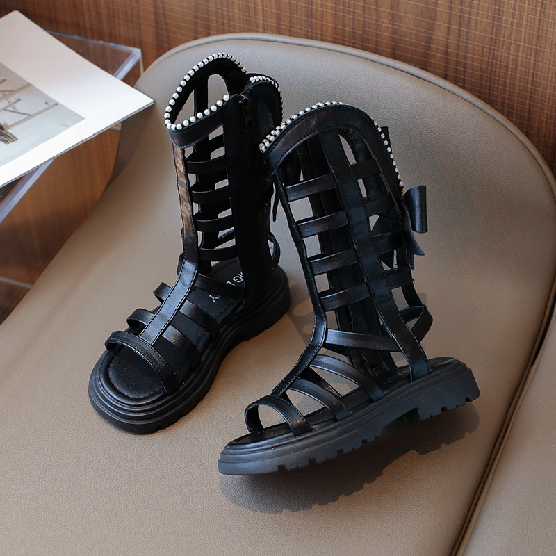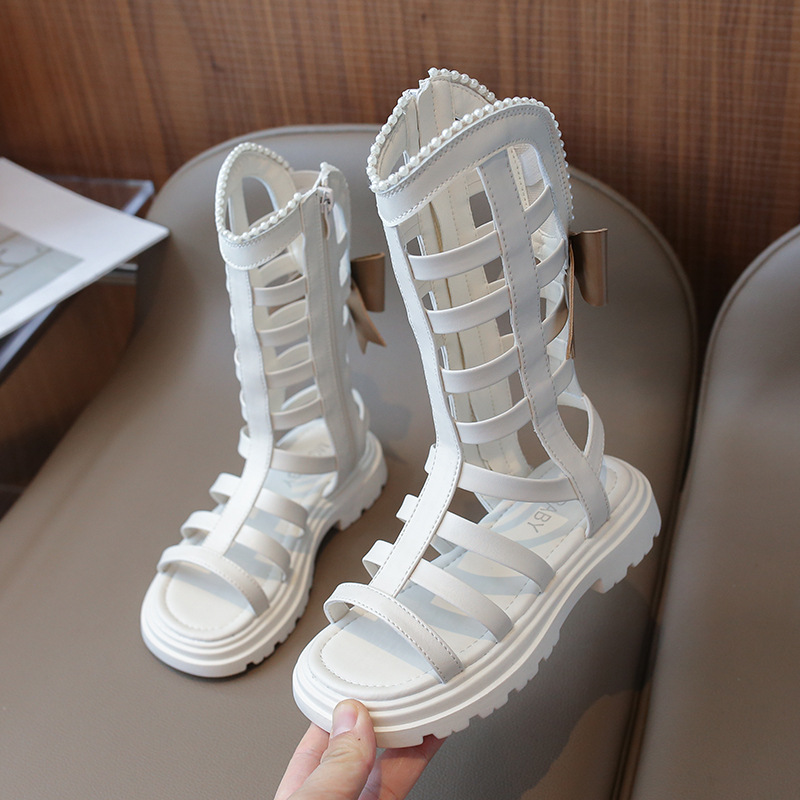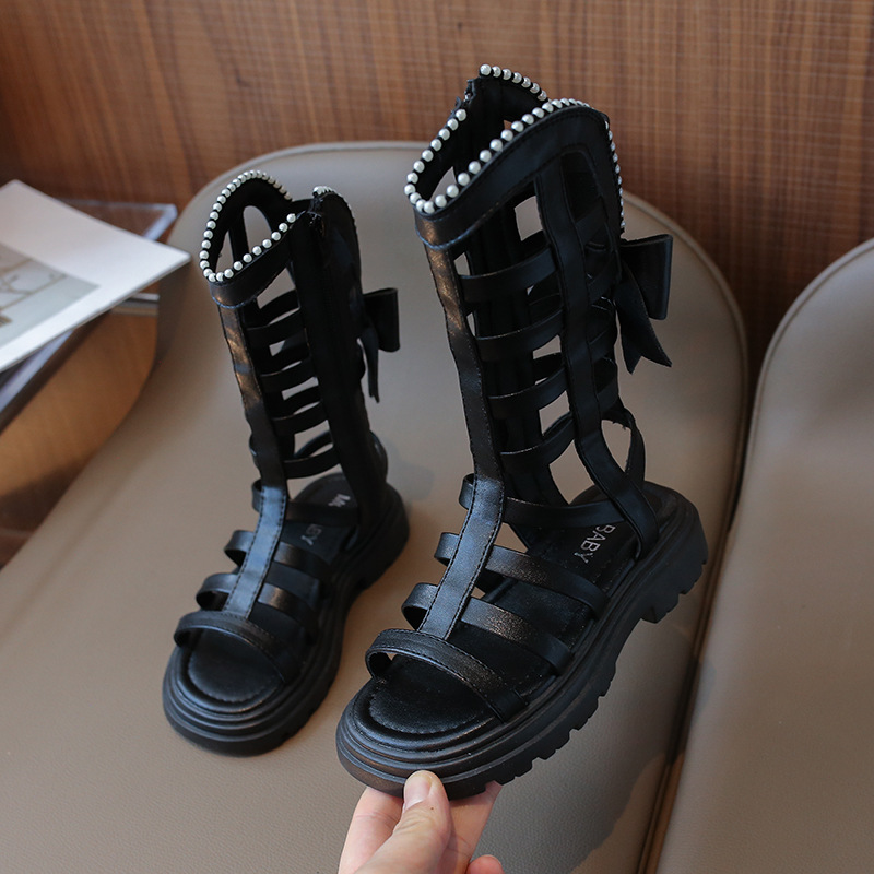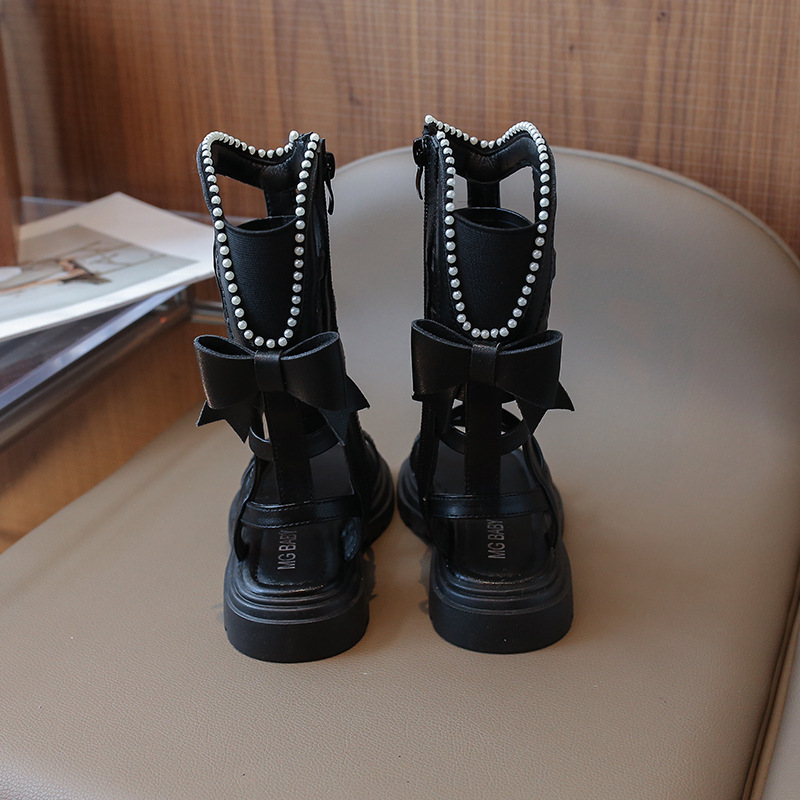 女童罗马凉鞋英伦风夏季鞋子2025新款儿童高帮珍珠蝴蝶结沙滩鞋潮