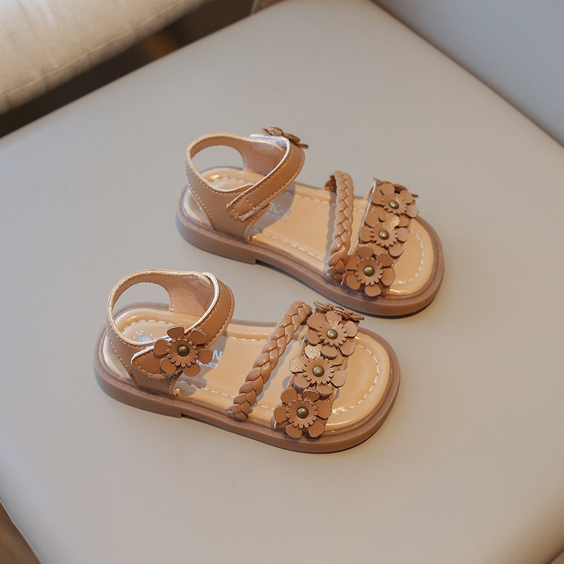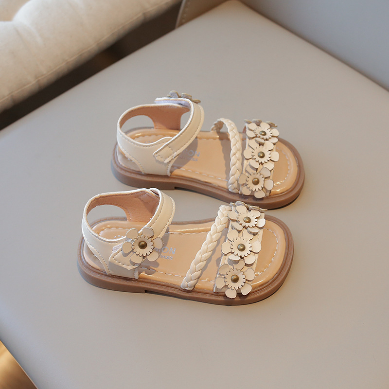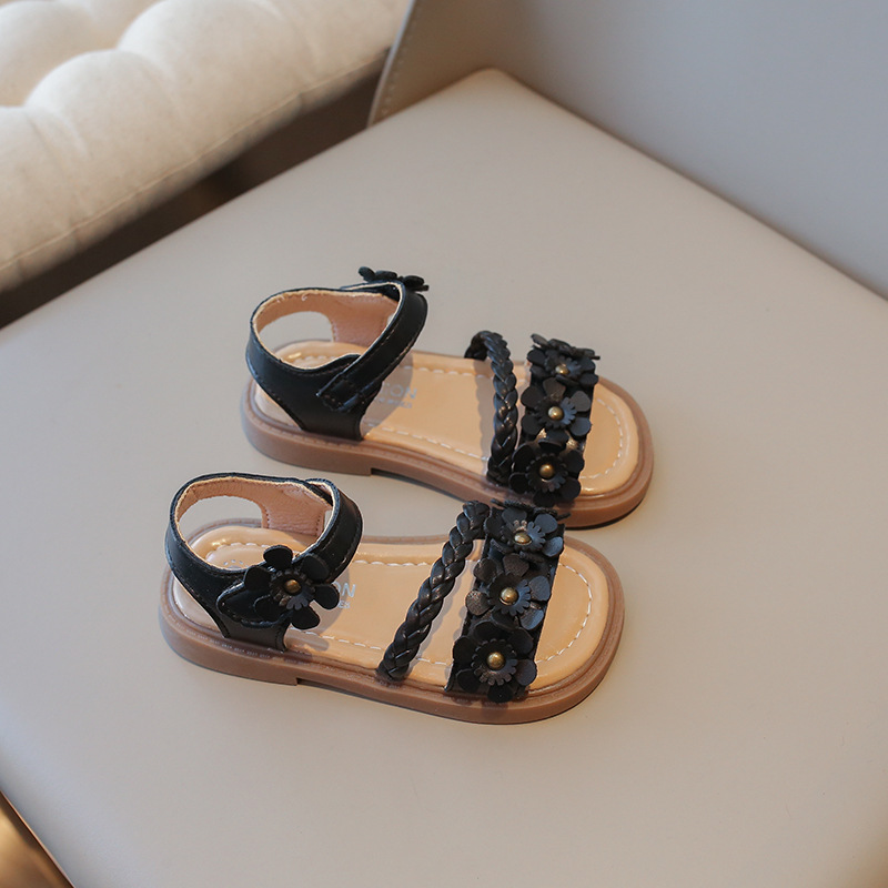 夏季新款女童编织凉鞋儿童花朵公主鞋中大童校园软底沙滩鞋