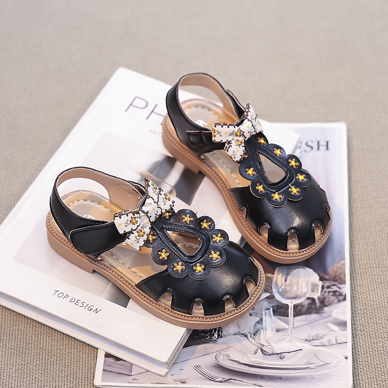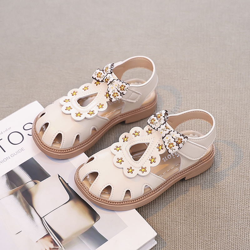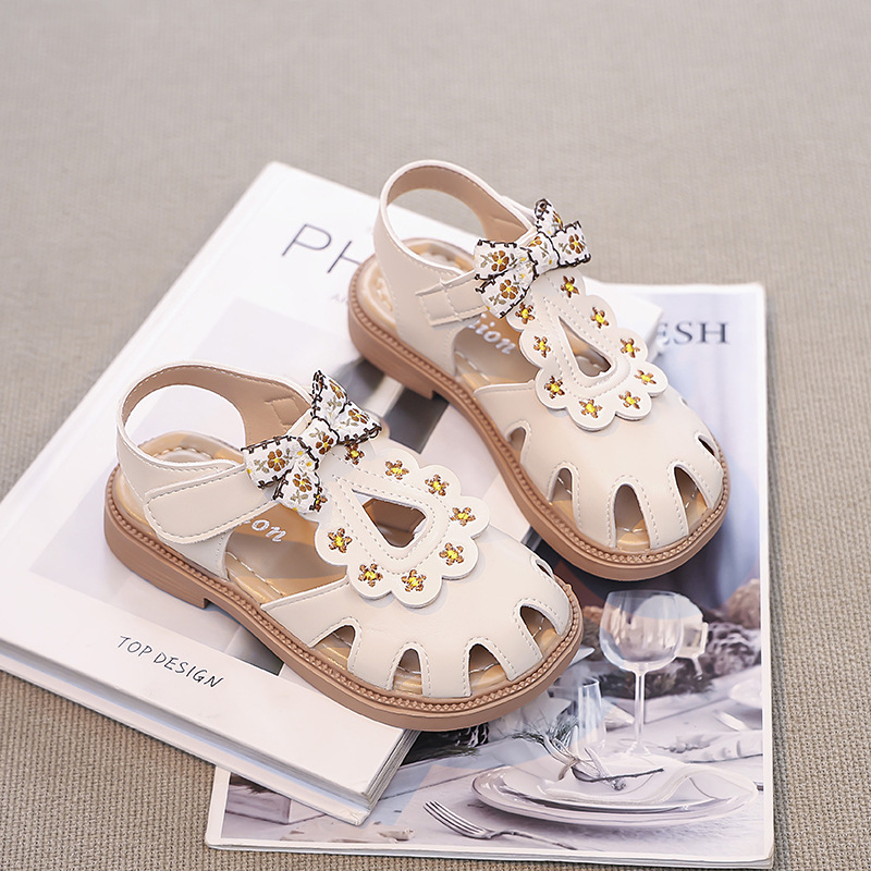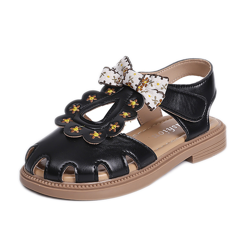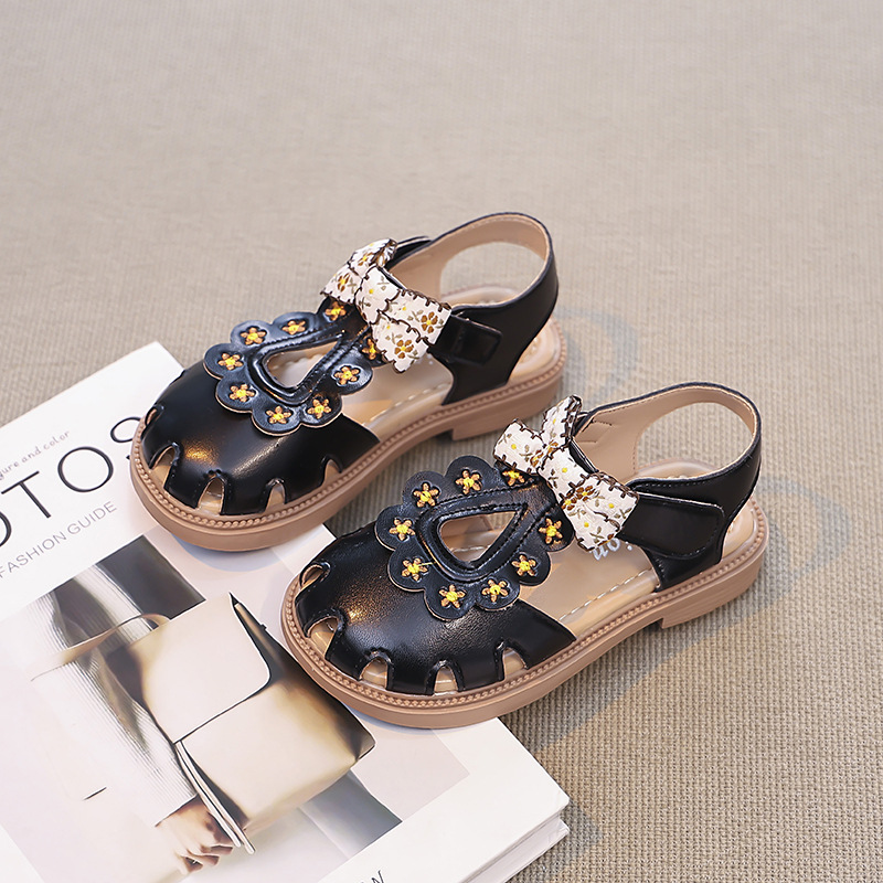 女童凉鞋2025年夏季新款蝴蝶结刺绣公主鞋韩版大童宝宝包头学生鞋