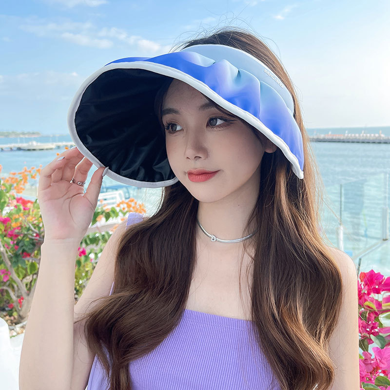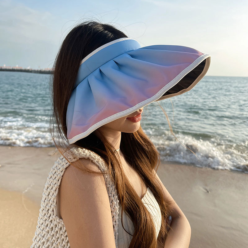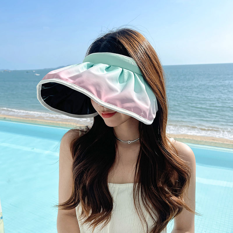 UPF50+防晒帽子女春夏防紫外线太阳帽黑胶大檐渐变色空顶贝壳帽